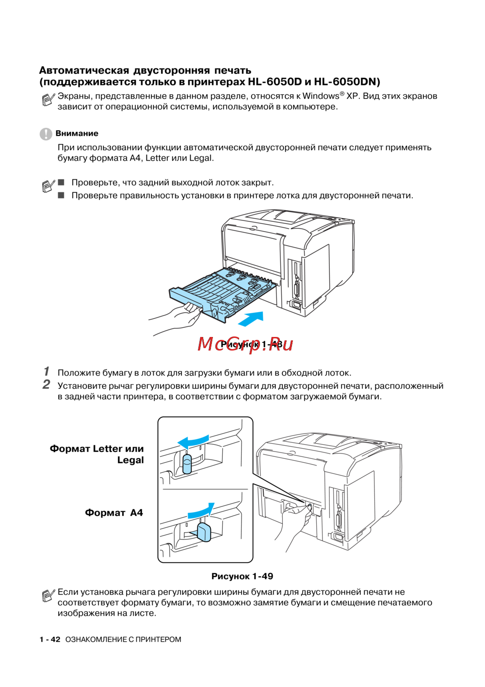 - Автоматическая двусторонняя печать поддерживается только в принтерах hl 6050d и hl 6050dn p.51