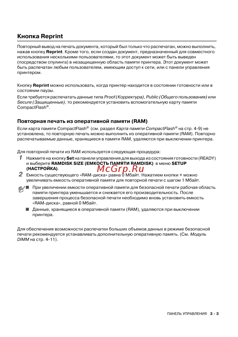 увеличивать емкость оперативной памяти для повторной печати с шагом 1 Мбайт.