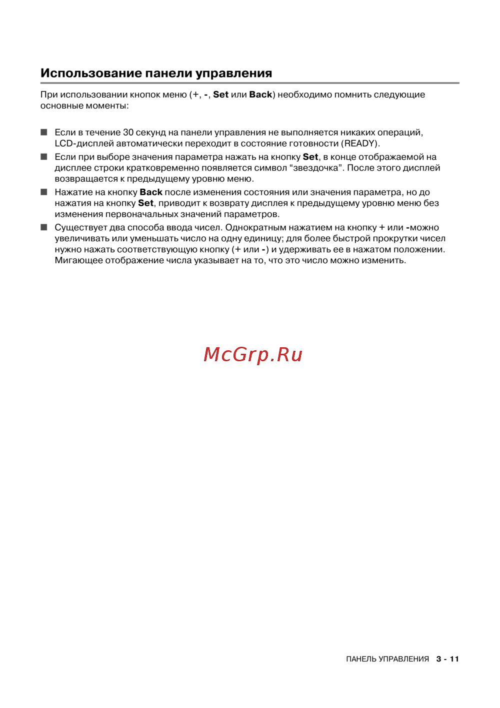 ПАНЕЛЬ УПРАВЛЕНИЯ 3 11