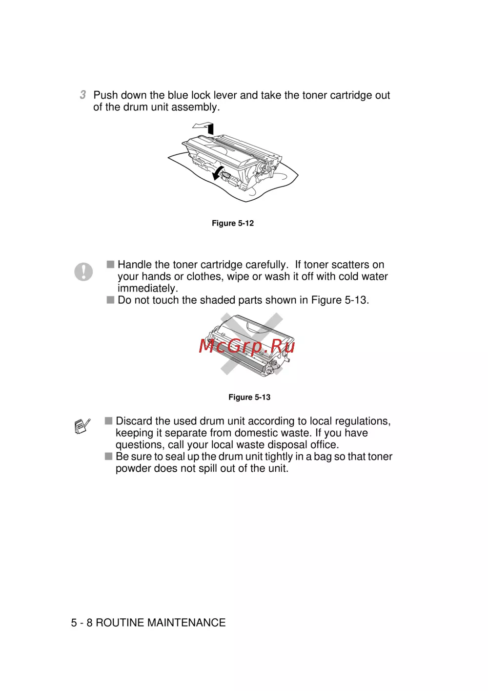 ■ Discard the used drum unit according to local regulations,
