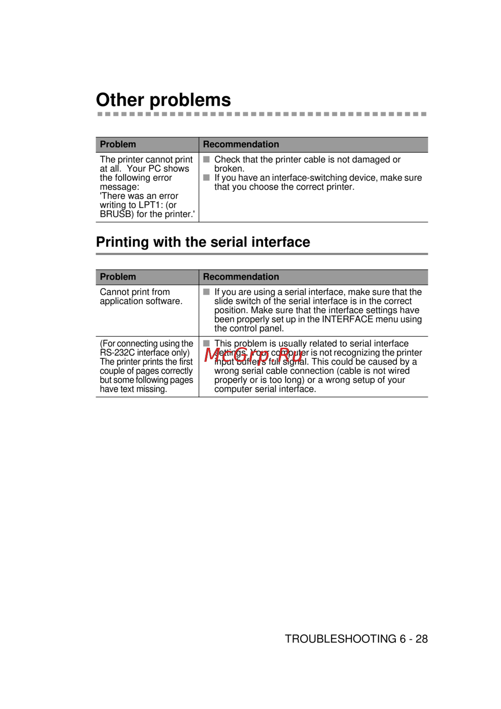 Brother HL-7050 — решение проблем с печатью через последовательный интерфейс [196/253]