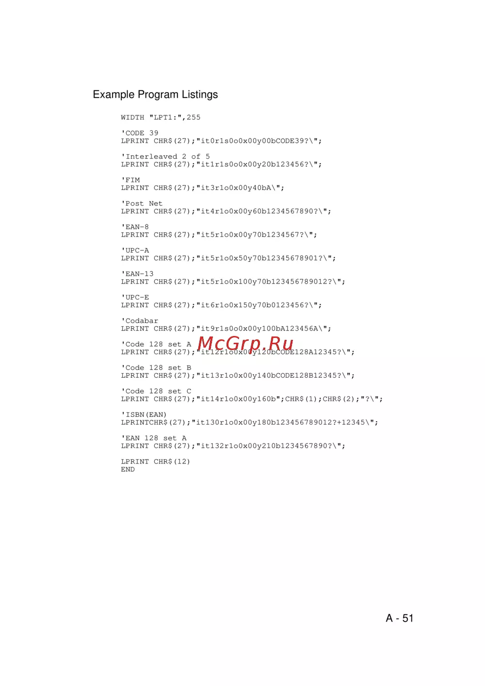 LPRINT CHR$(27);"it9r1s0o0x00y100bA123456A\";