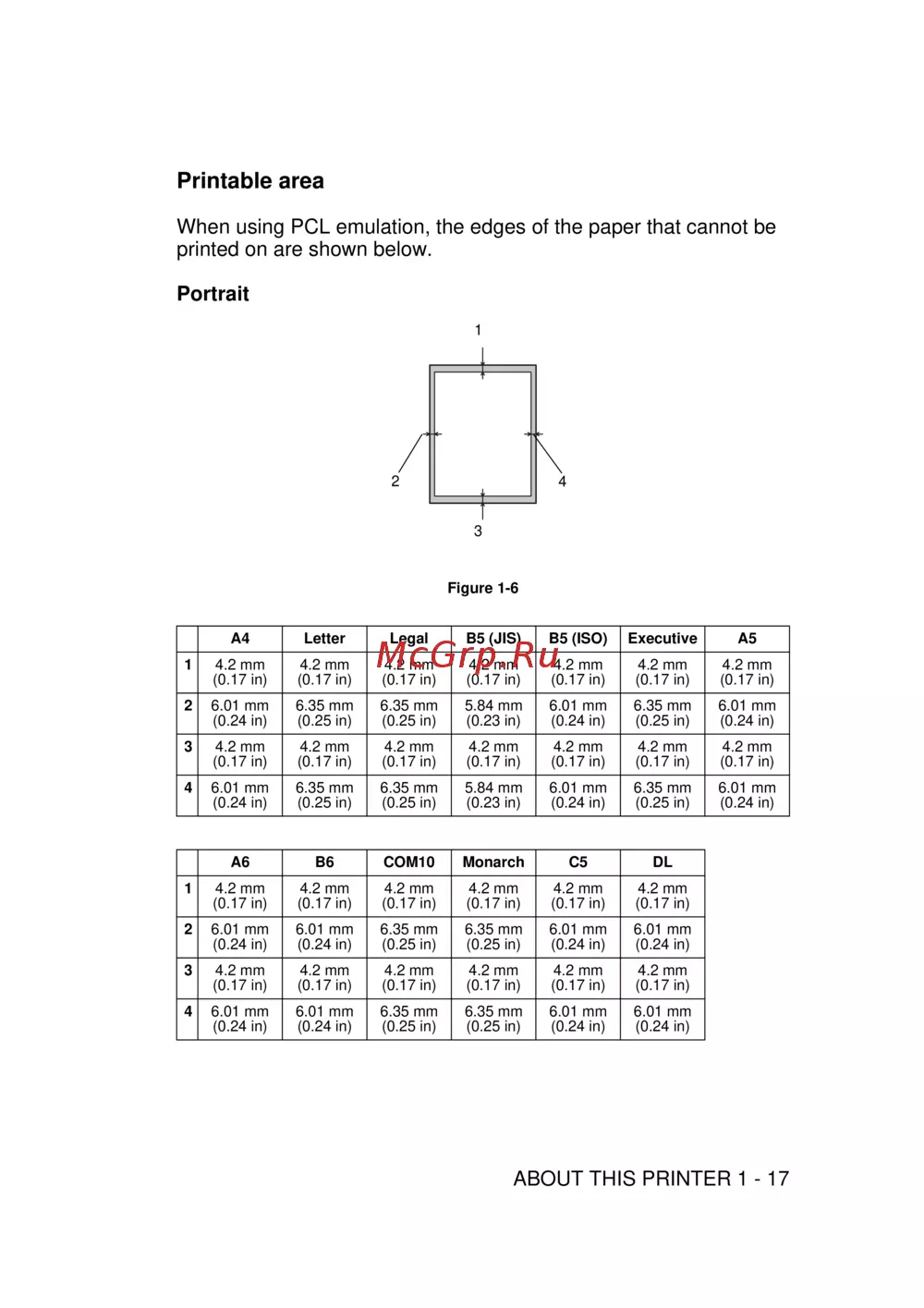 Brother HL-7050 [36/253] When using pcl emulation the edges of the paper that cannot be printed on are shown below