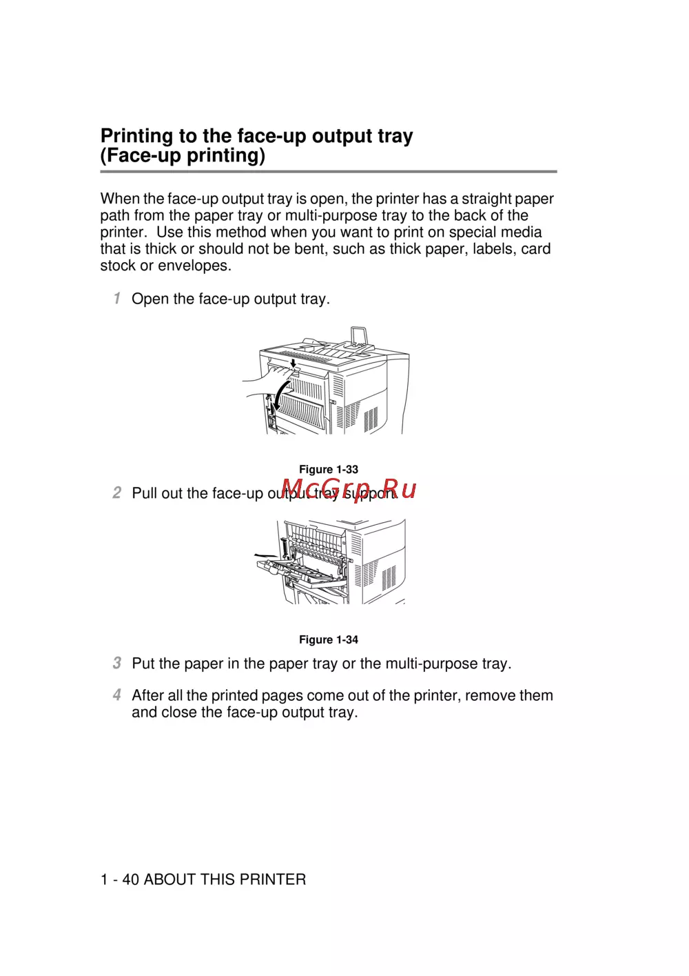 Brother HL-7050 — как правильно использовать лицевую подачу бумаги в принтере [59/253]