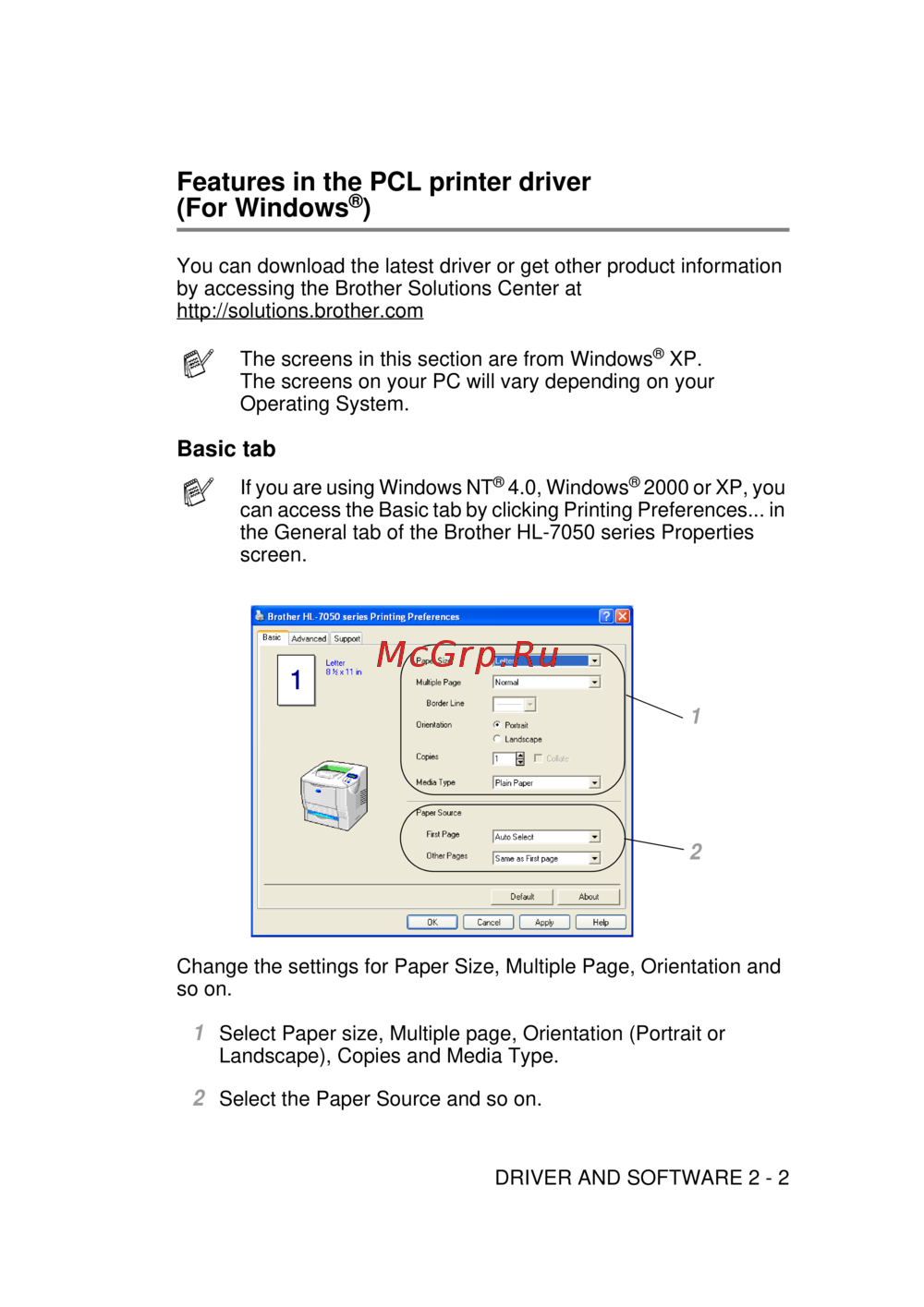 Brother HL-7050 — обзор функций драйвера PCL для принтеров Windows [62/253]