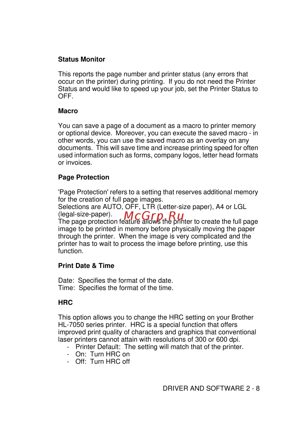 Brother HL-7050 — управление принтером: мониторинг статуса и макросы печати [68/253]