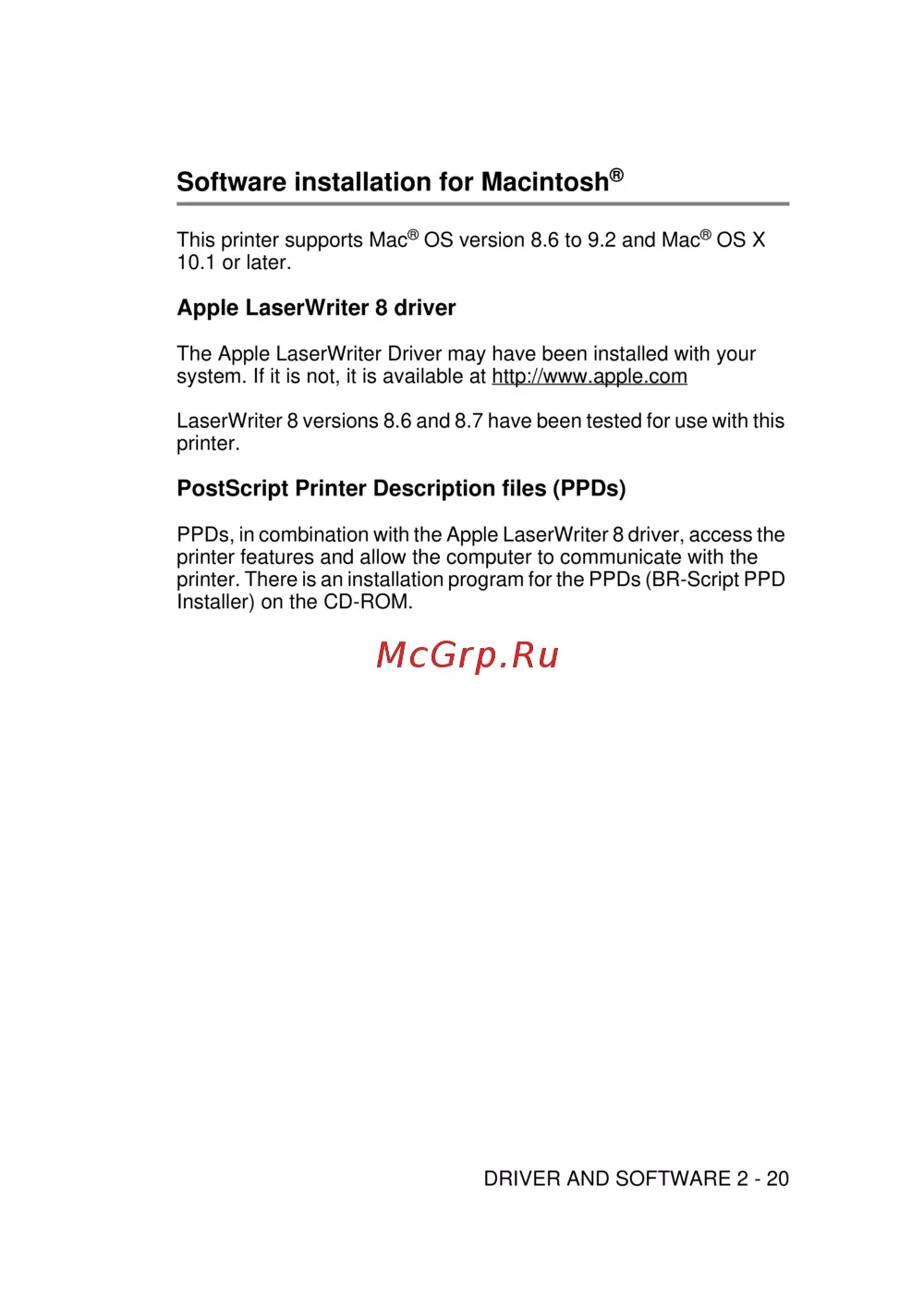 printer. There is an installation program for the PPDs (BR-Script PPD