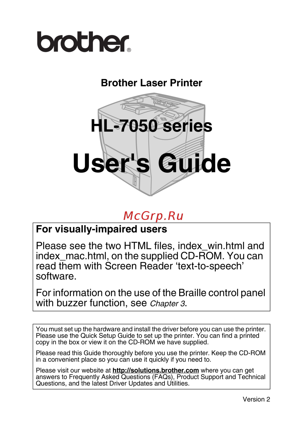 Brother HL-7050N — user Guide for Laser Printers: Setup and Accessibility Tips [1/253]