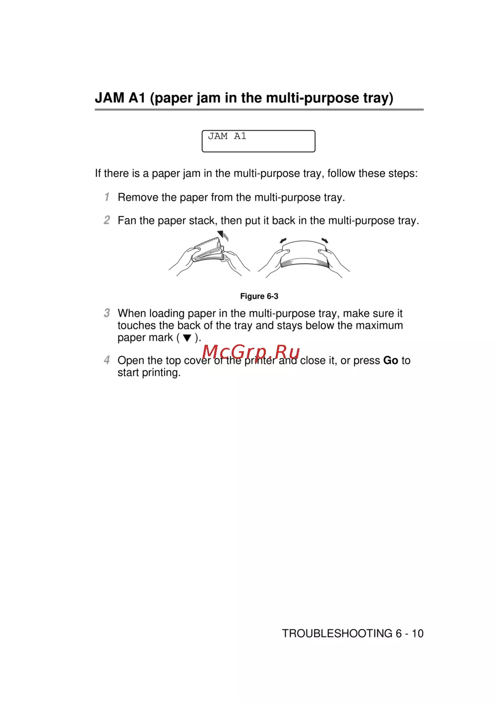 Fan the paper stack, then put it back in the multi-purpose tray.