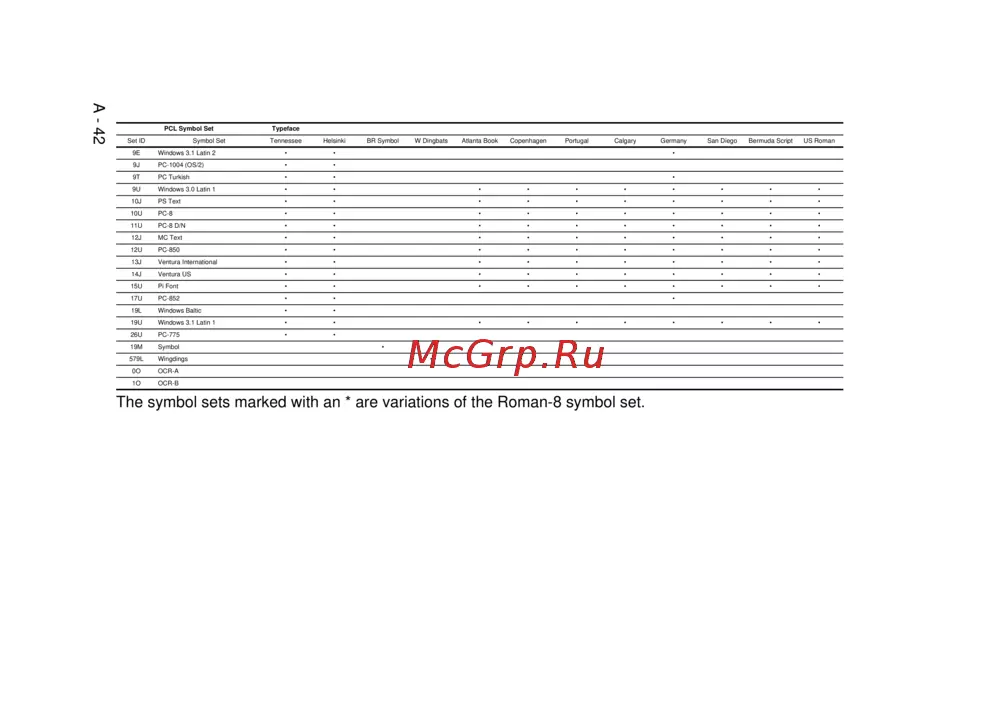 - Symbol sets supported by the printer s truetype and type 1 font compatible and original typefaces p.240