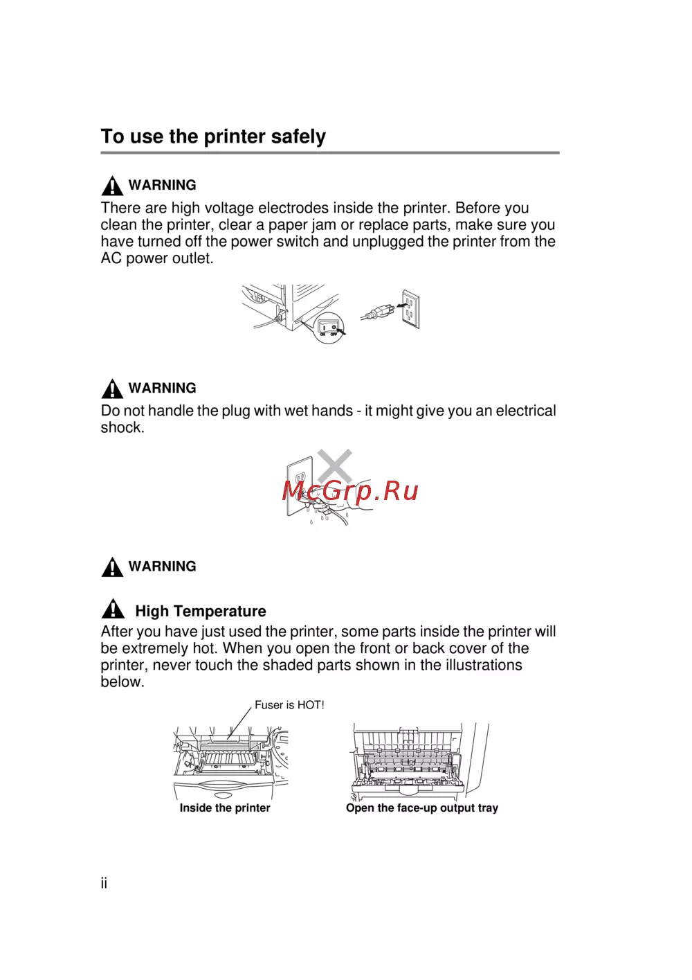 ![Brother HL-7050N [3/253] To use the printer safely](/views2/1025192/page3/bg3.png)