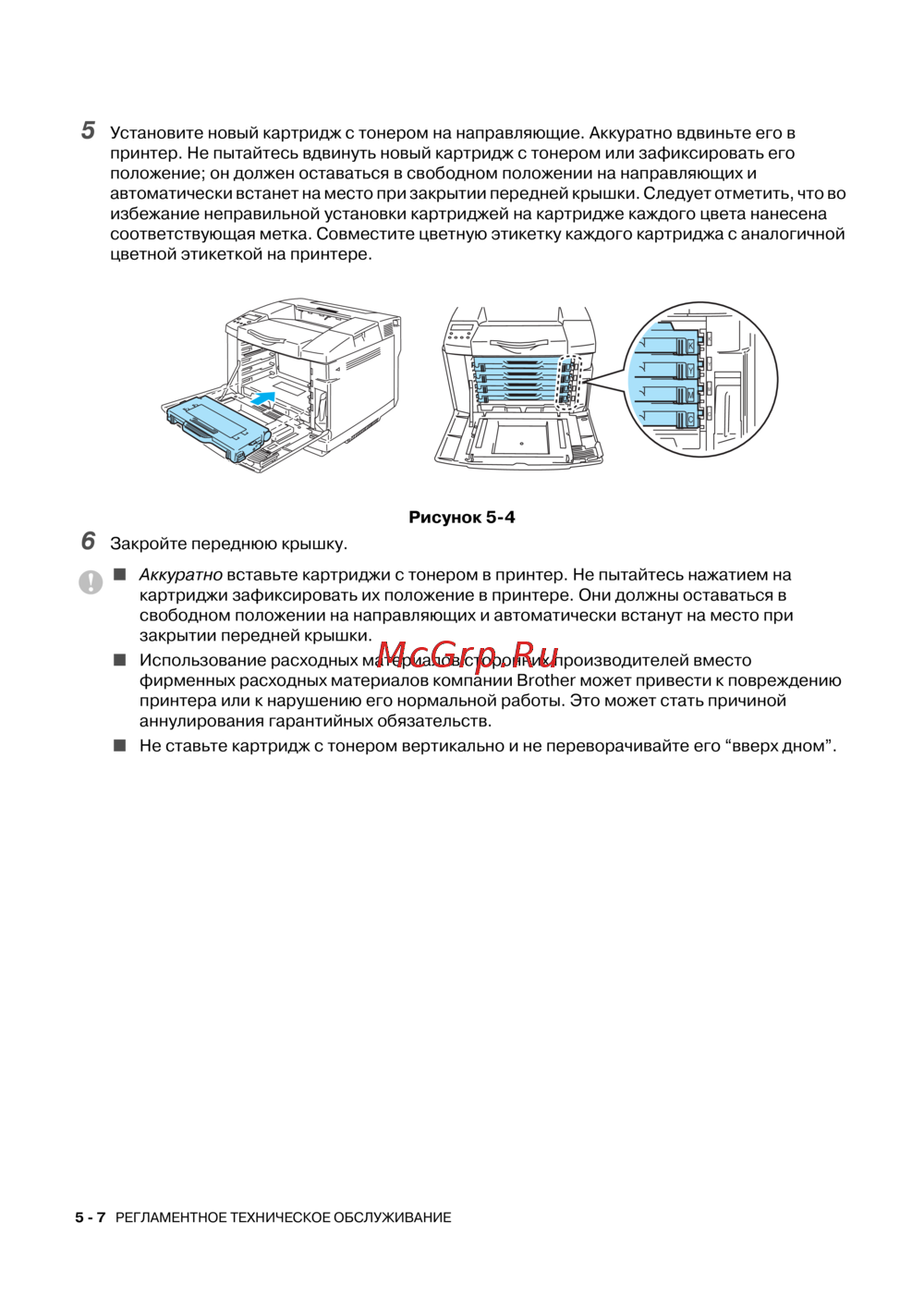 Brother HL-2700CN — регламентное техническое обслуживание принтера и установка картриджей [118/175]