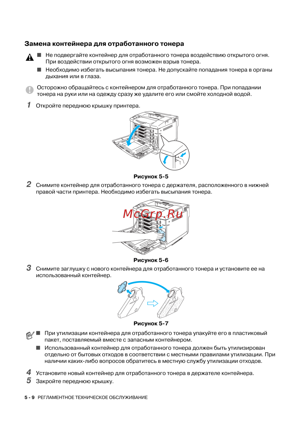 ■ Использованный контейнер для отработанного тонера должен быть утилизирован
