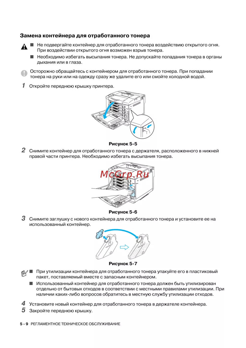Узнайте, как правильно заменить контейнер для отработанного тонера в принтере. Следуйте пошаговым инструкциям для безопасной утилизации и предотвращения загрязнений.