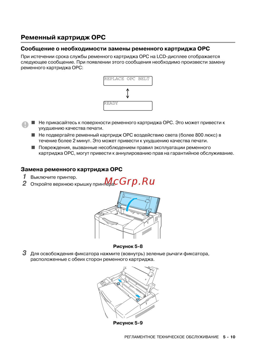 - Сообщение о необходимости замены ременного картриджа opc p.121