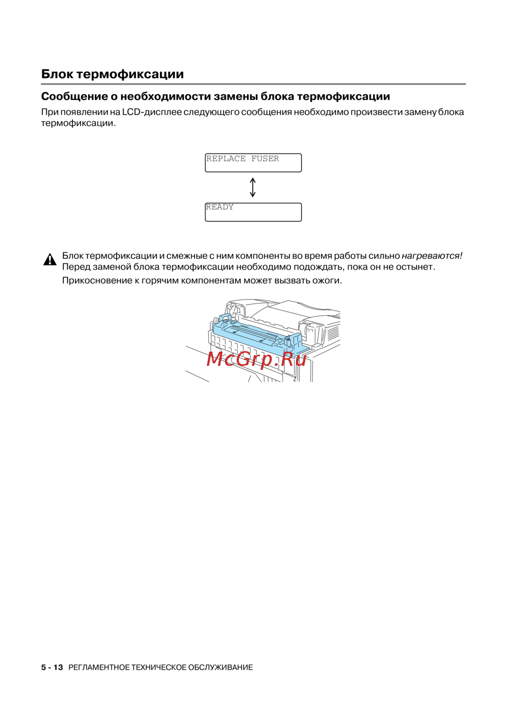 Перед заменой блока термофиксации необходимо подождать, пока он не остынет.