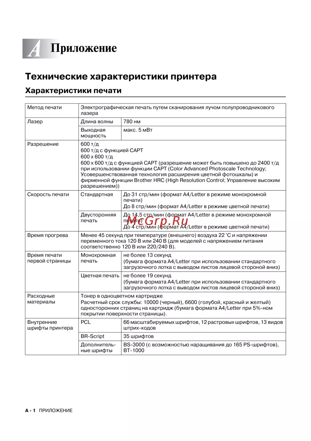 Brother HL-2700CN [170/175] Технические характеристики принтера