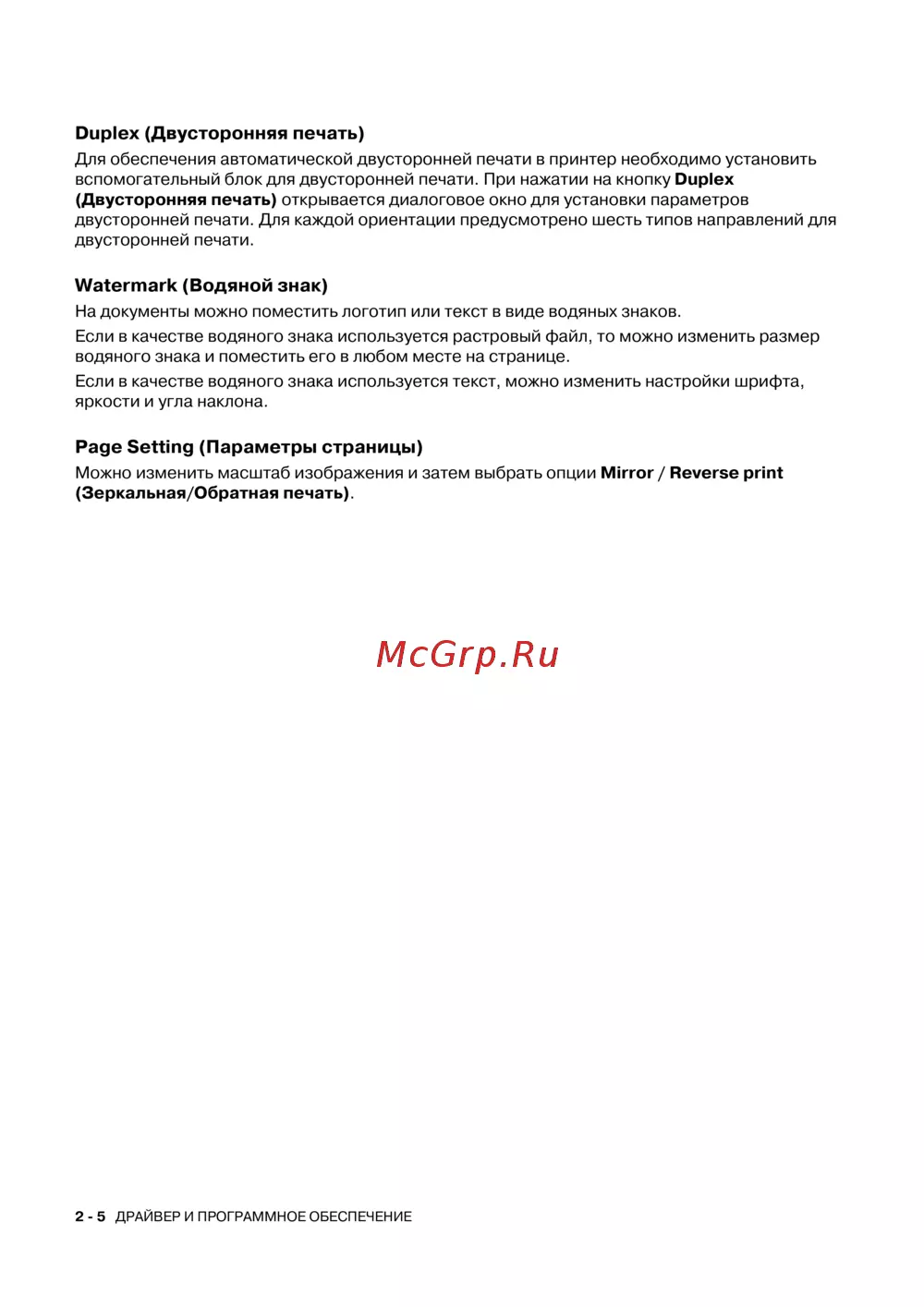 Brother HL-2700CN — настройка двусторонней печати и водяных знаков в принтере [44/175]