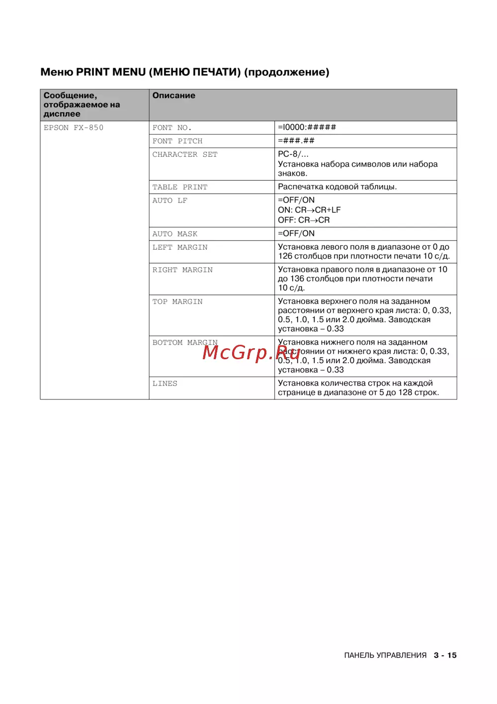 LEFT MARGIN Установка левого поля в диапазоне от 0 до
