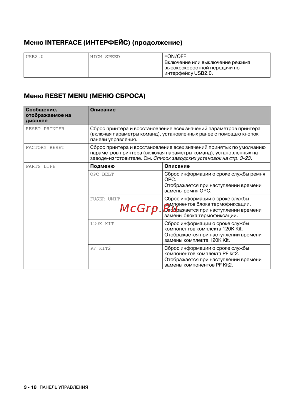 Brother HL-2700CN — управление принтером: сброс и настройки интерфейса USB [78/175]