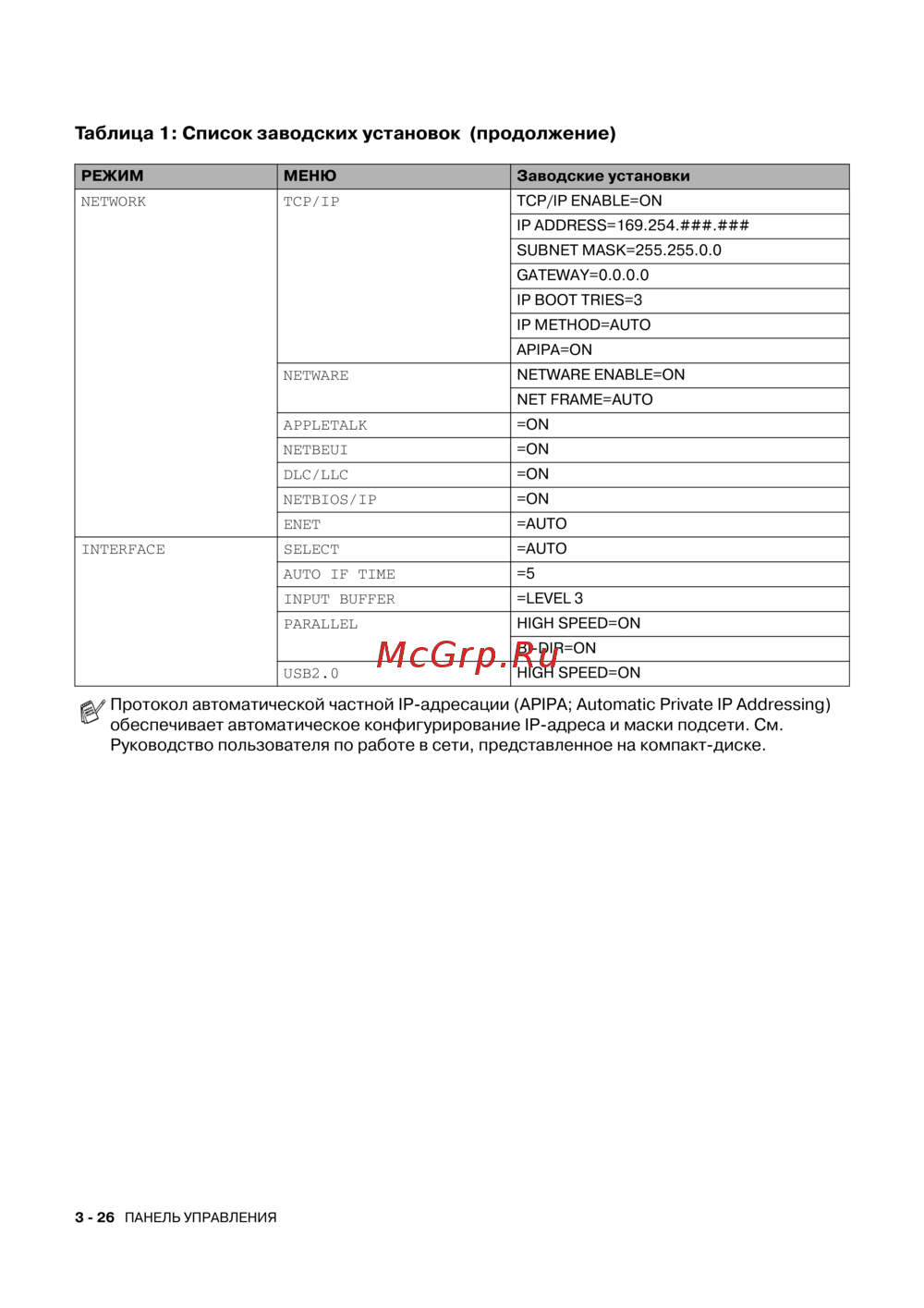 Brother HL-2700CN [86/175] Таблица 1 список заводских установок продолжение