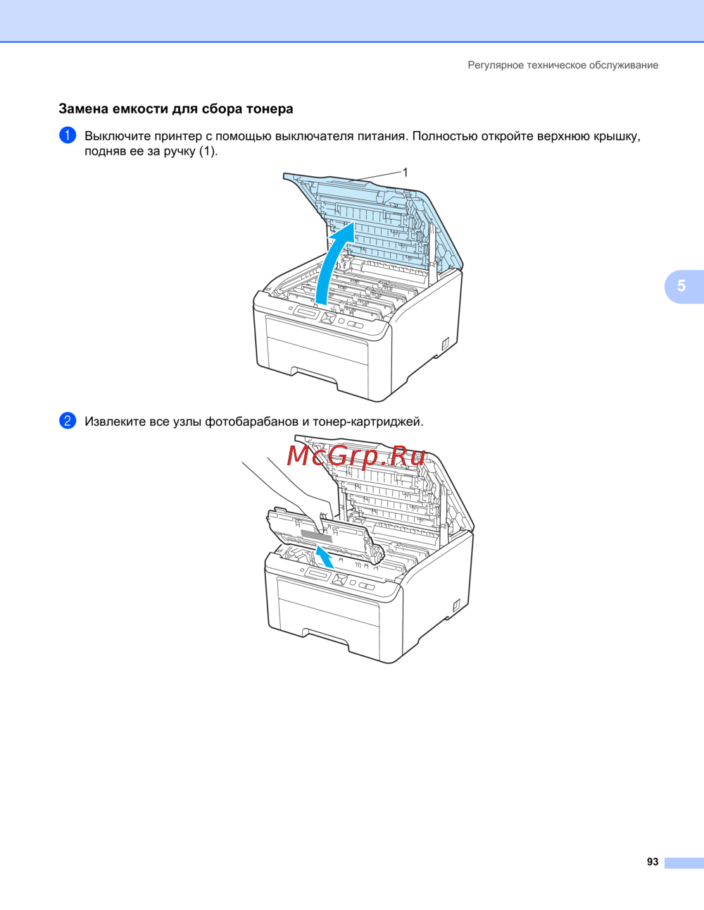 - Сразу после использования принтера некоторые внутренние детали могут быть очень горячими перед выполнения следующего действия подождите минимум 10 минут чтобы принтер остыл p.132