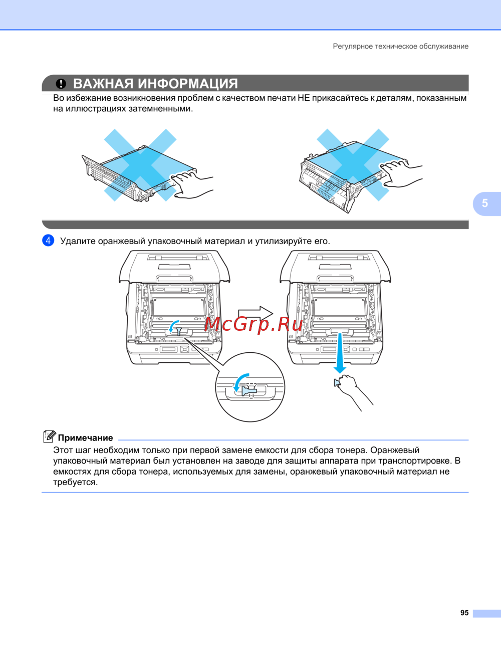Этот шаг необходим только при первой замене емкости для сбора тонера. Оранжевый