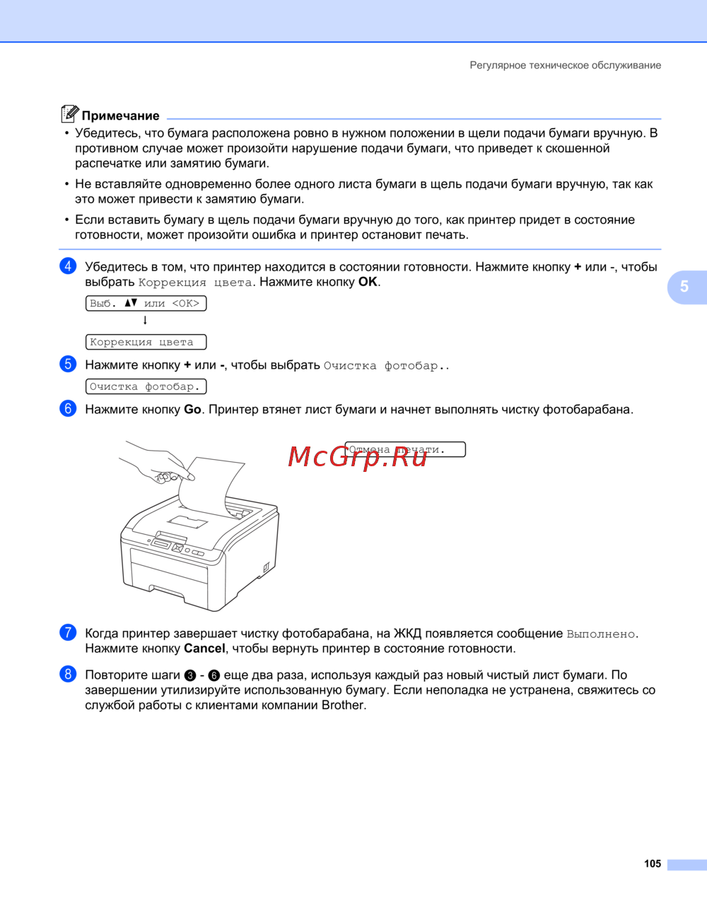 - Примечание удалить бумагу проще если вытягивать ее вниз p.129