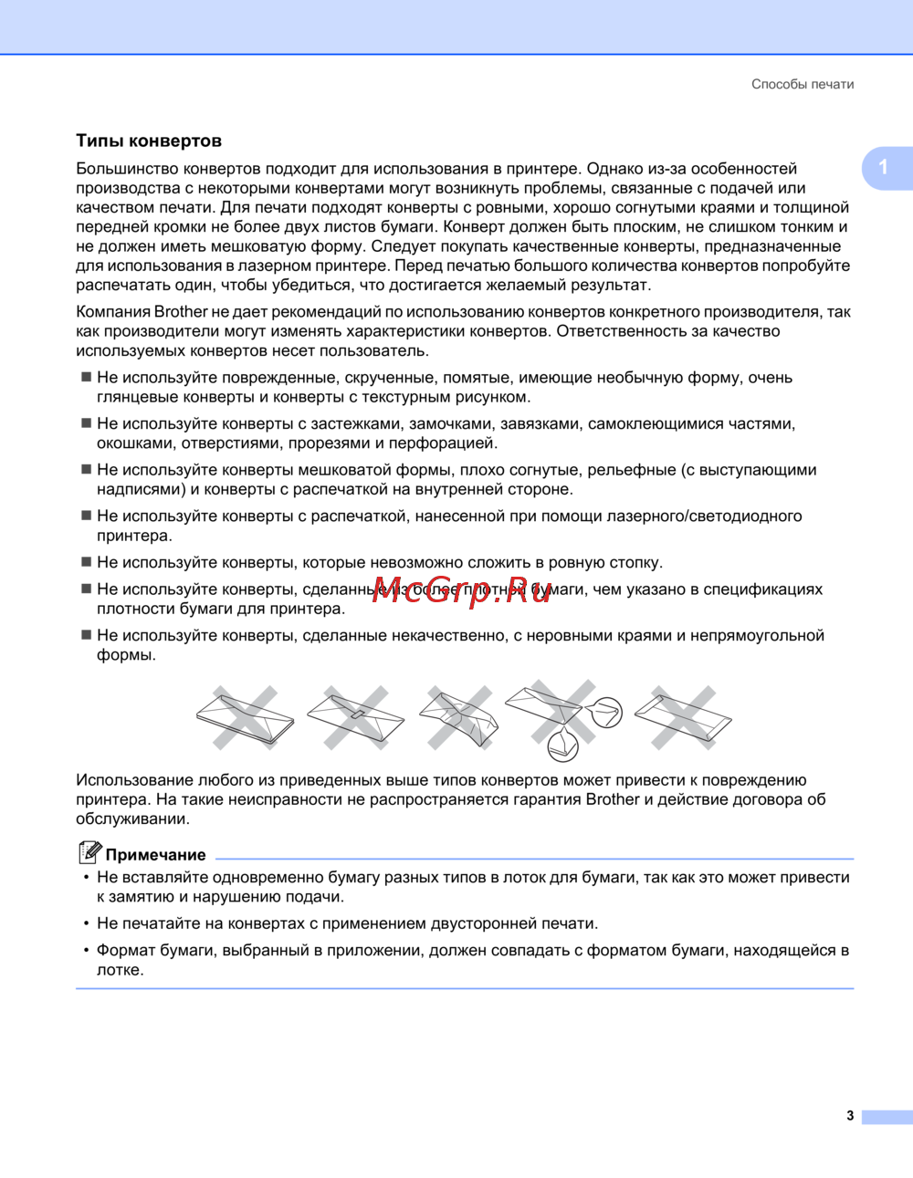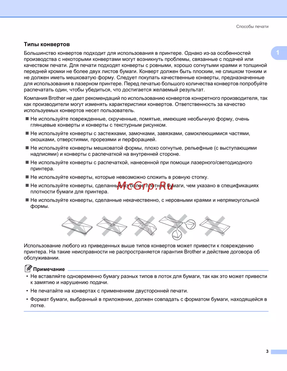Не используйте конверты с распечаткой, нанесенной при помощи лазерного/светодиодного