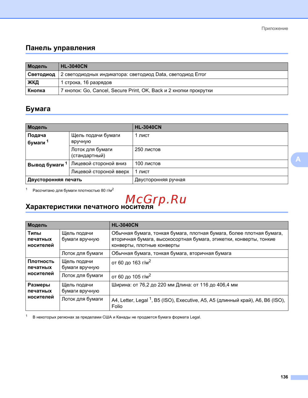 Brother HL-3040CN [146/155] Характеристики печатного носителя