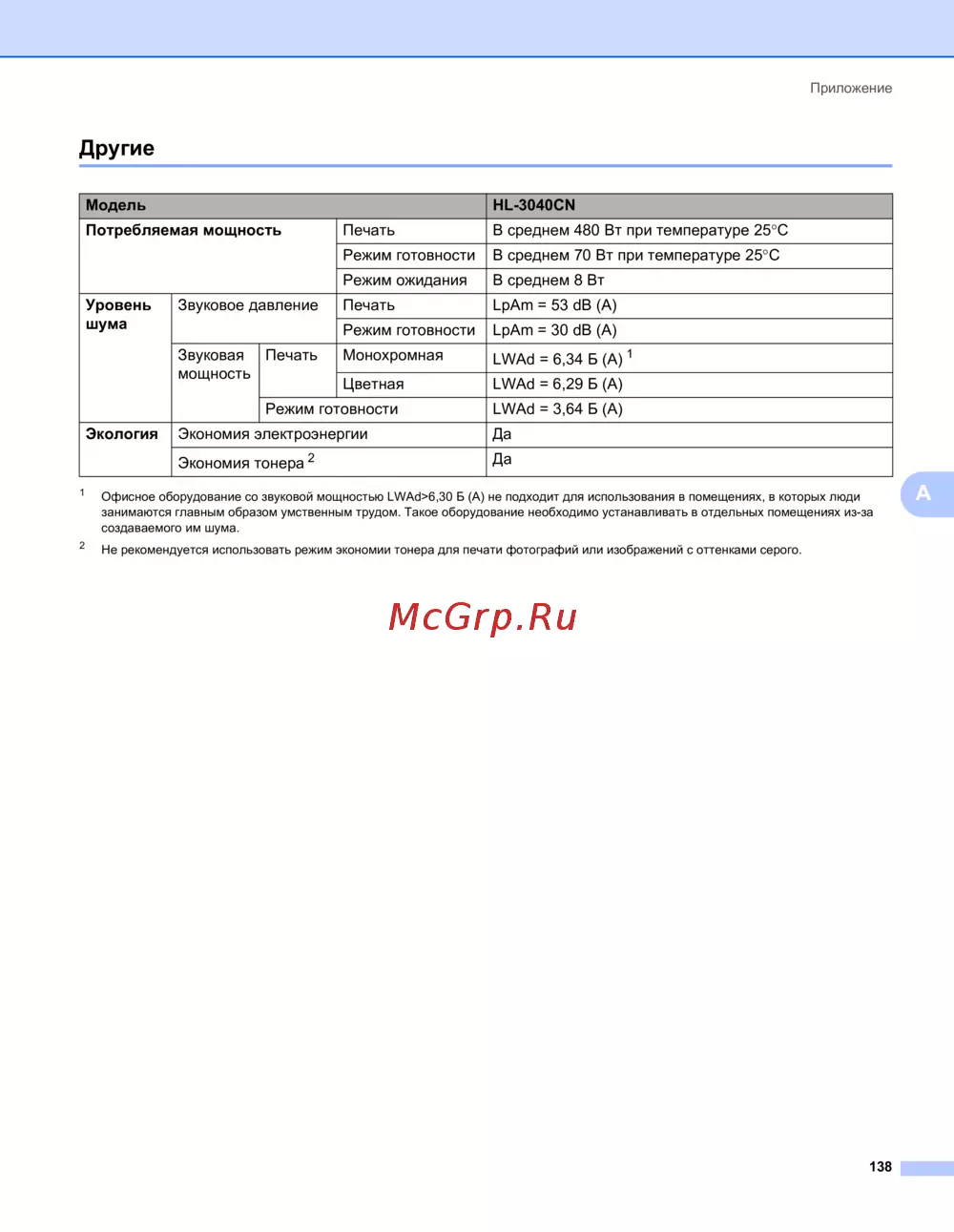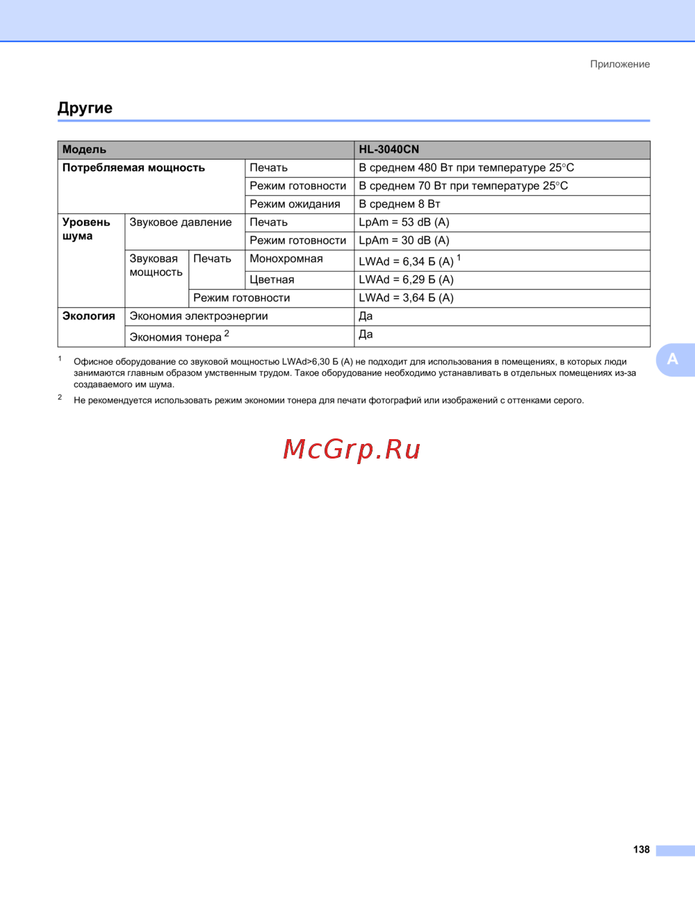 Brother HL-3040CN — офисное оборудование: шум, экономия энергии и тонера [148/155]