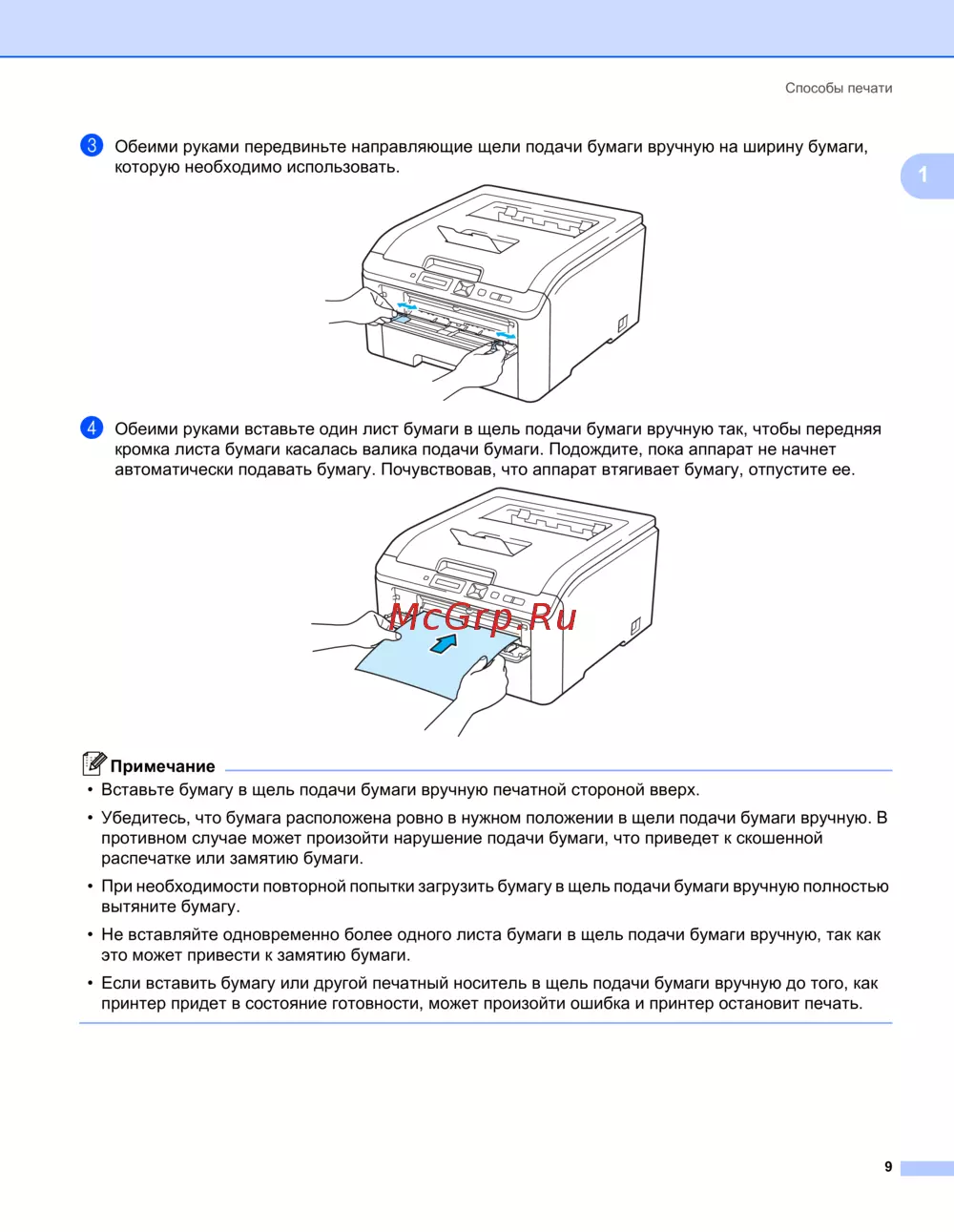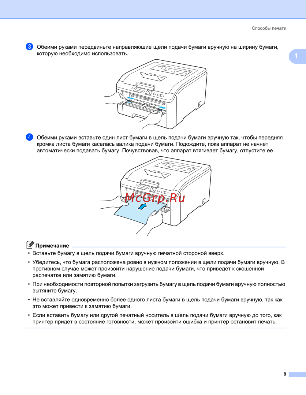 - Двусторонняя ручная печать с помощью щели подачи бумаги вручную p.27