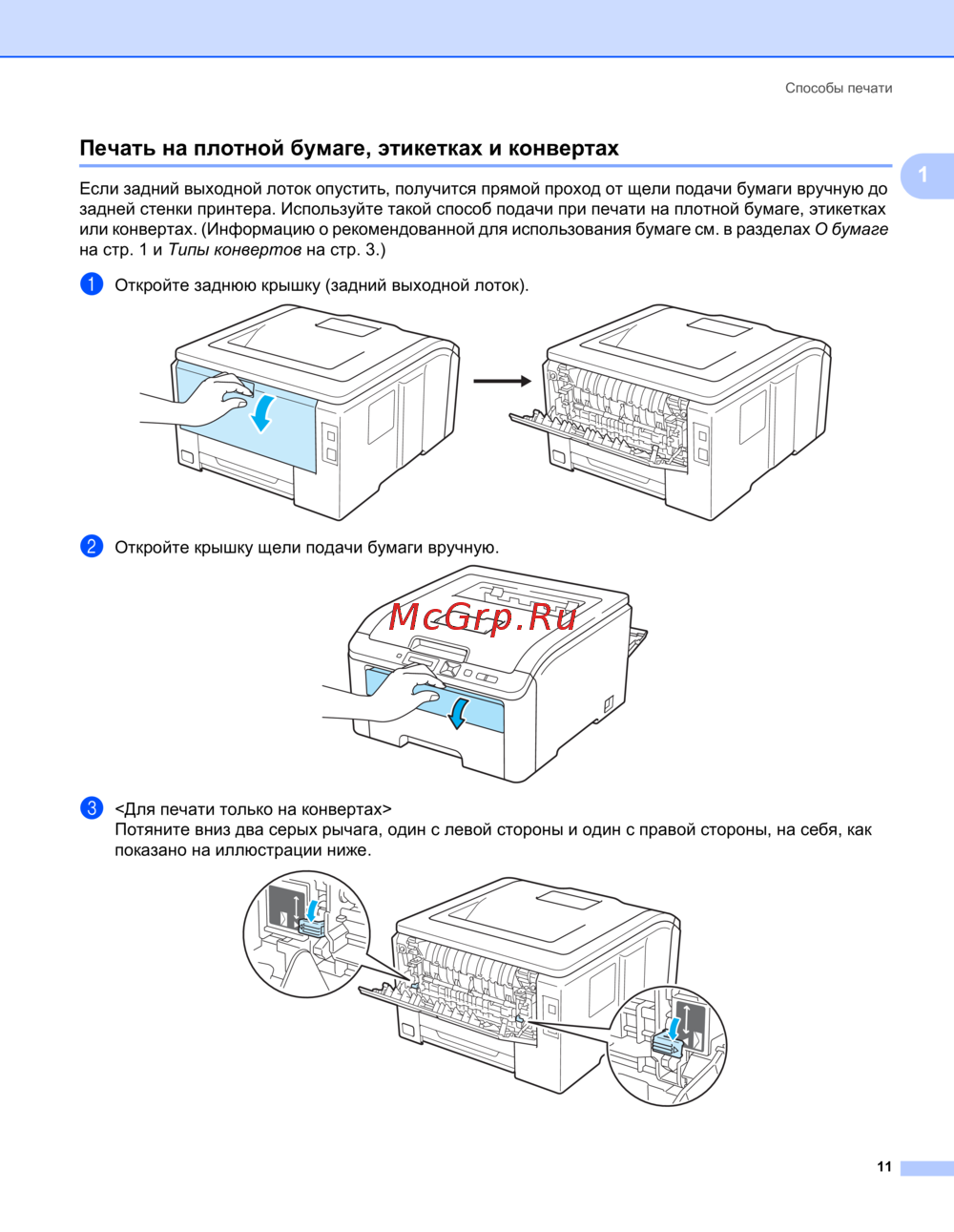 Brother HL-3040CN — способы печати на плотной бумаге и этикетках [21/155]