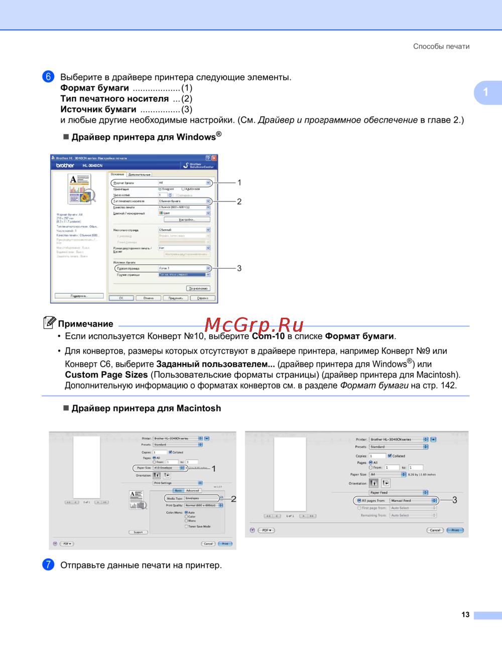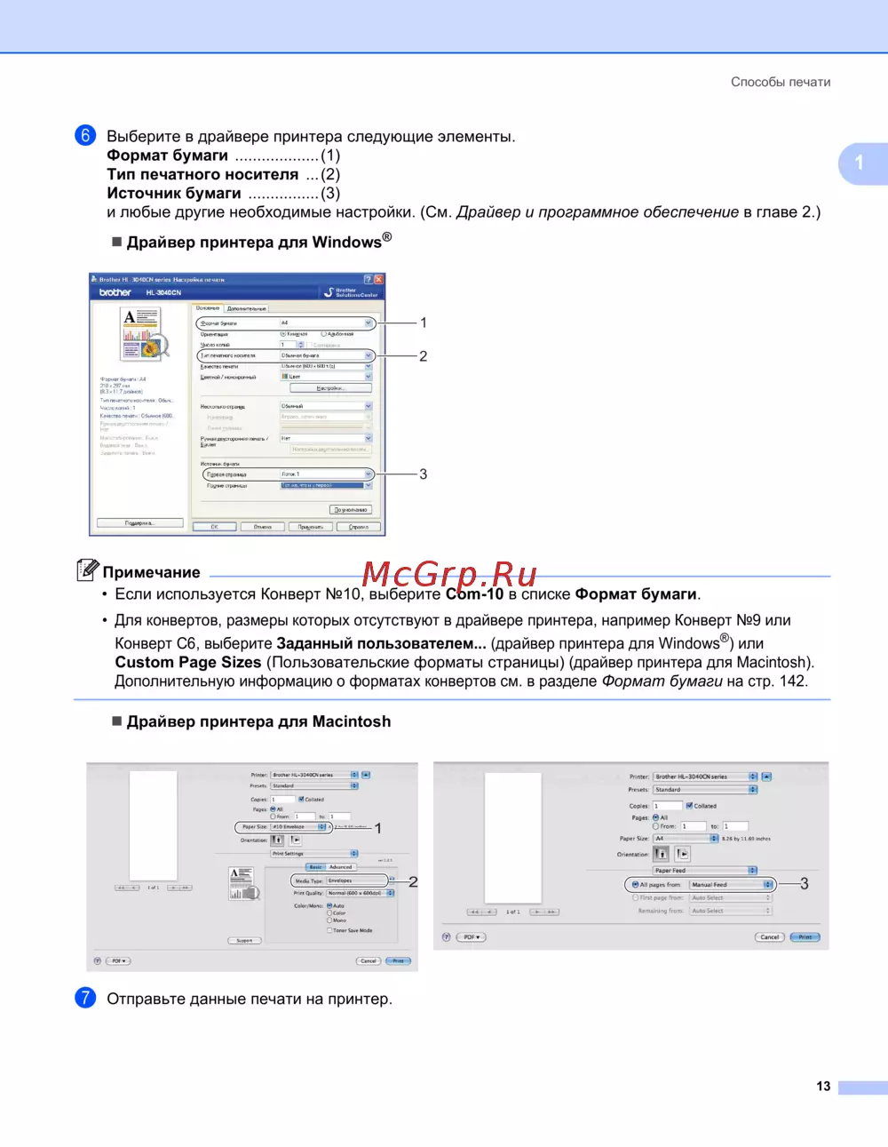 (драйвер принтера для Macintosh).