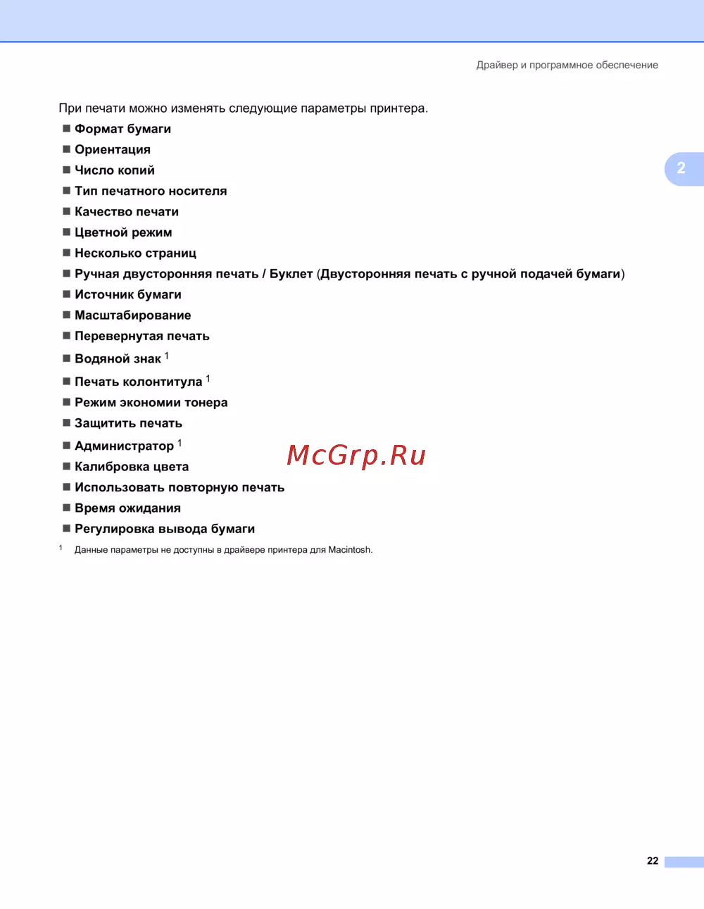 Данные параметры не доступны в драйвере принтера для Macintosh.