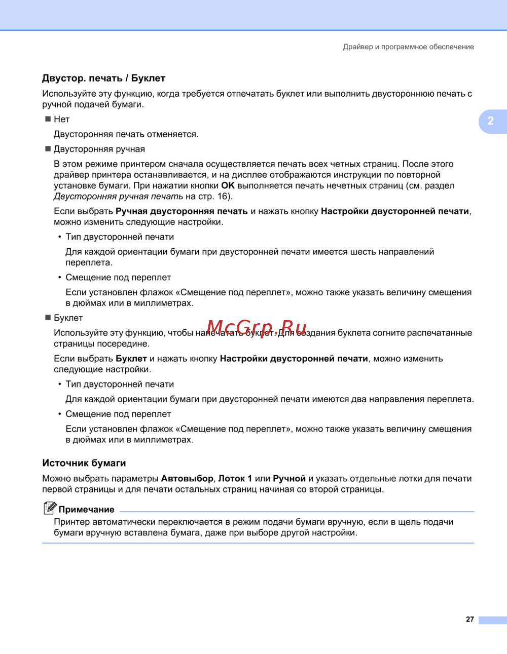 Двусторонняя ручная печать на стр. 16).