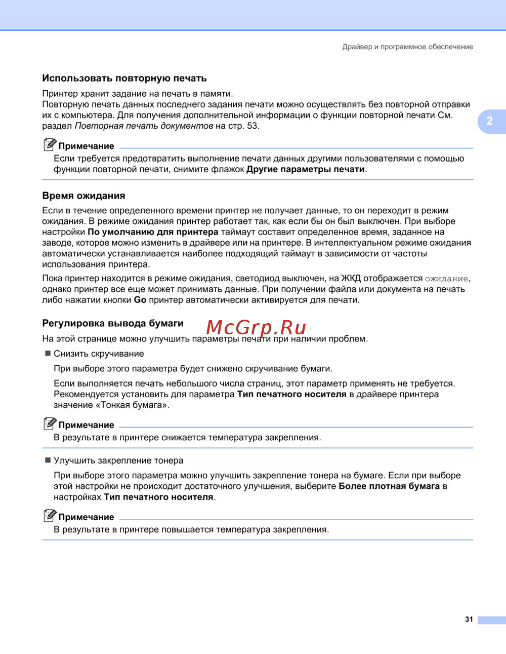 Brother HL-3040CN — настройки драйвера принтера для оптимизации печати и ожидания [41/155]