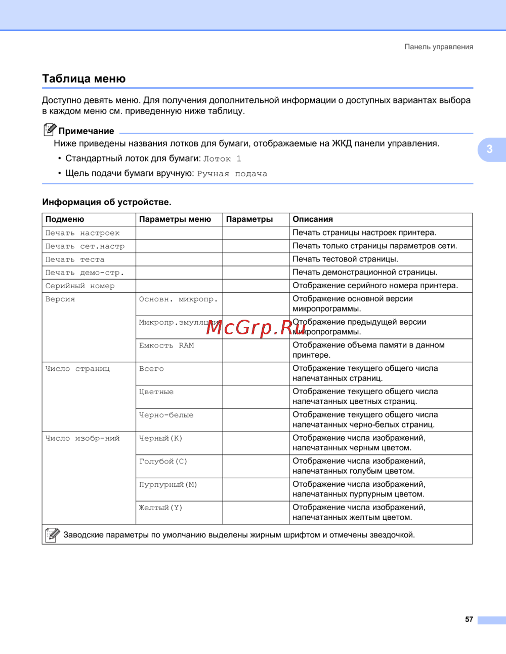 Brother HL-3040CN — информация о меню и параметрах управления принтером [67/155]