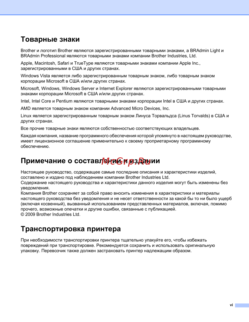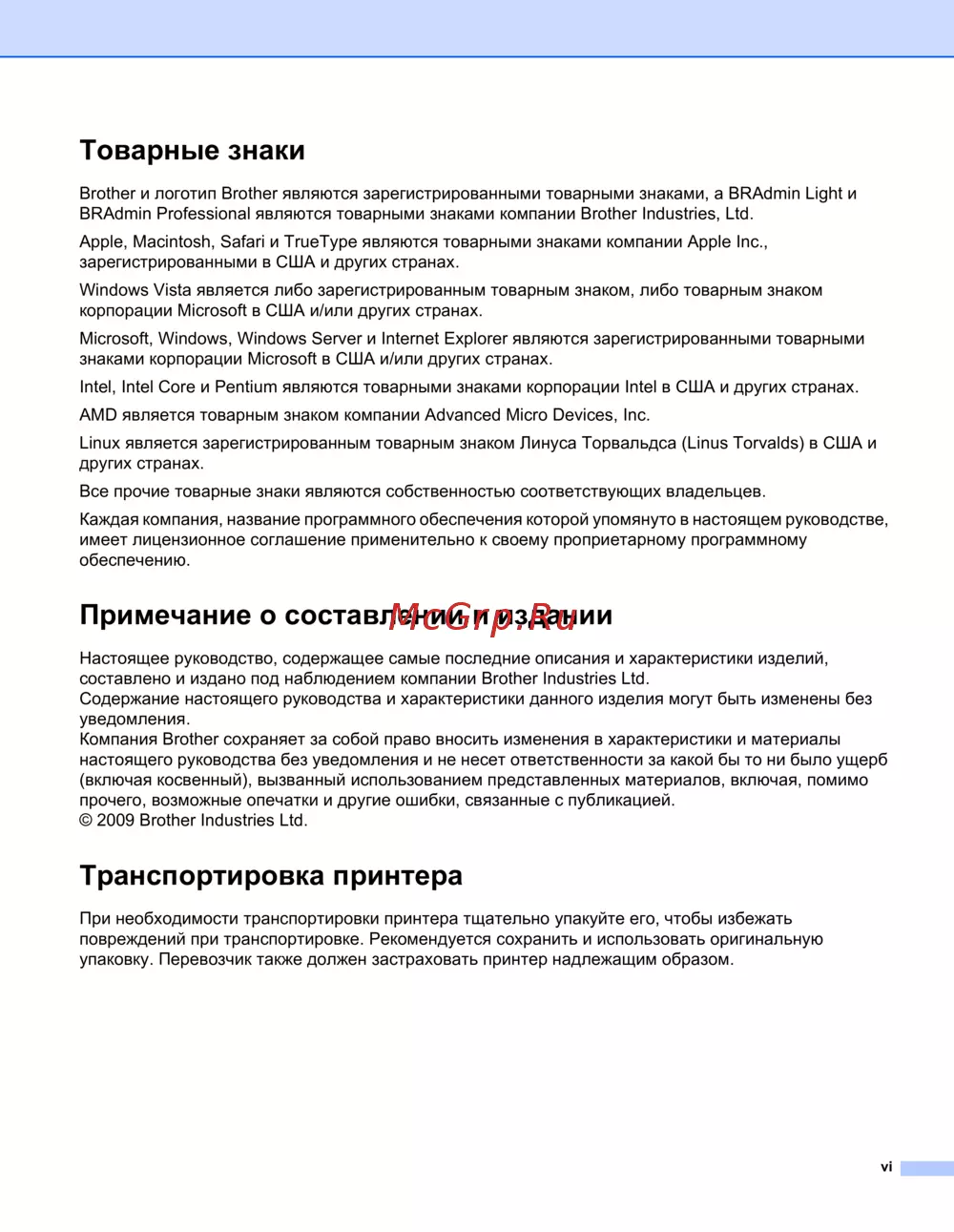 Brother HL-3040CN — информация о товарных знаках и транспортировке принтера [7/155]