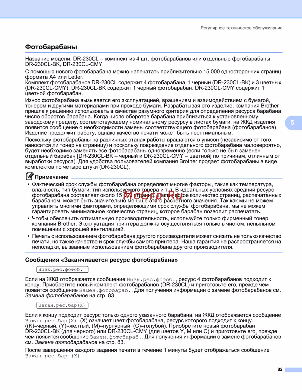 концу. Приобретите новый комплект фотобарабанов (DR-230CL) и приготовьте его, прежде чем