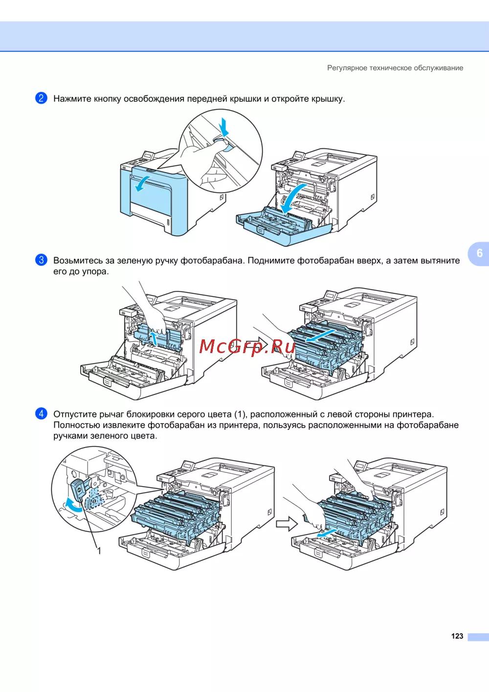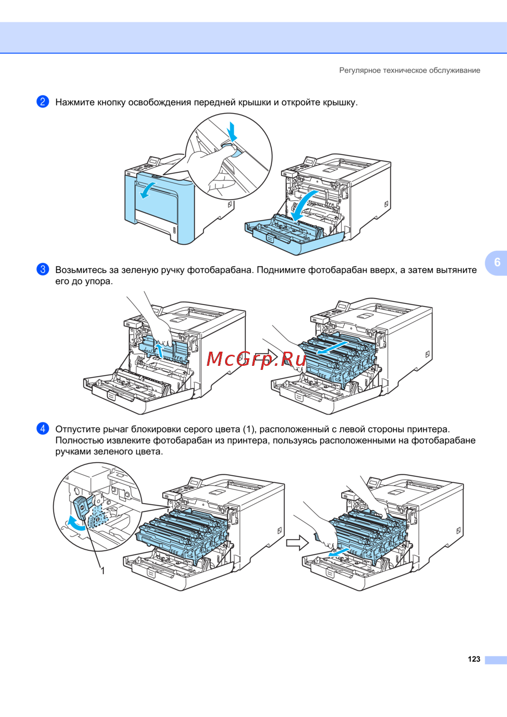 - При переноске фотобарабана держите его за зеленые ручки не держите фотобарабан за боковые стороны p.165