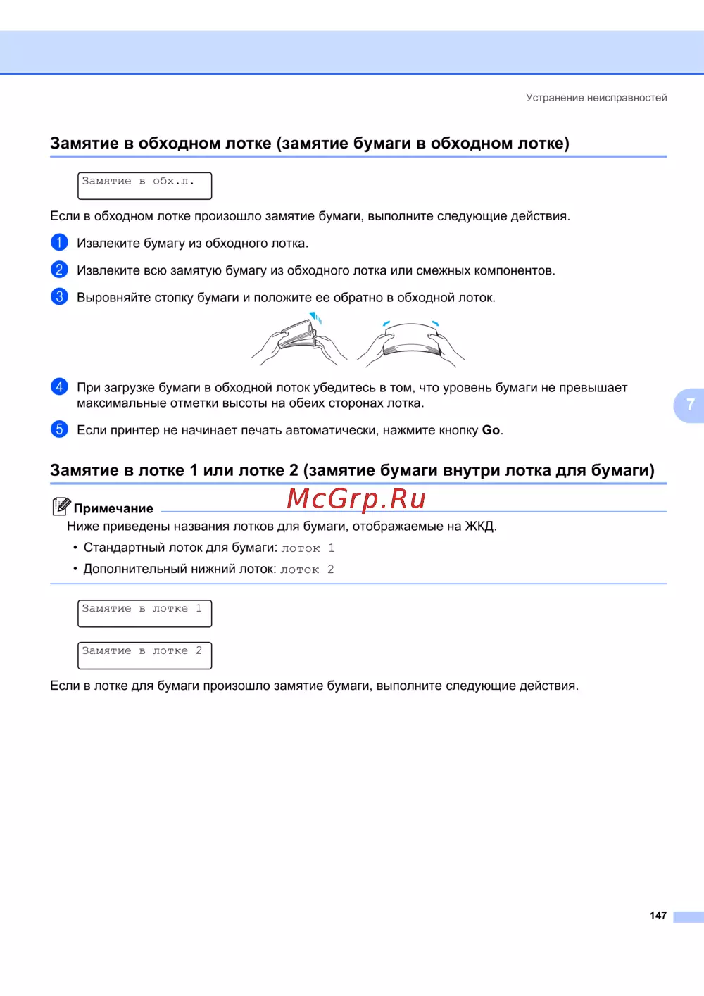 Замятие в лотке 1 или лотке 2 (замятие бумаги внутри лотка для бумаги) 7