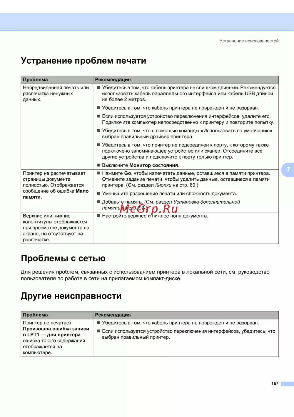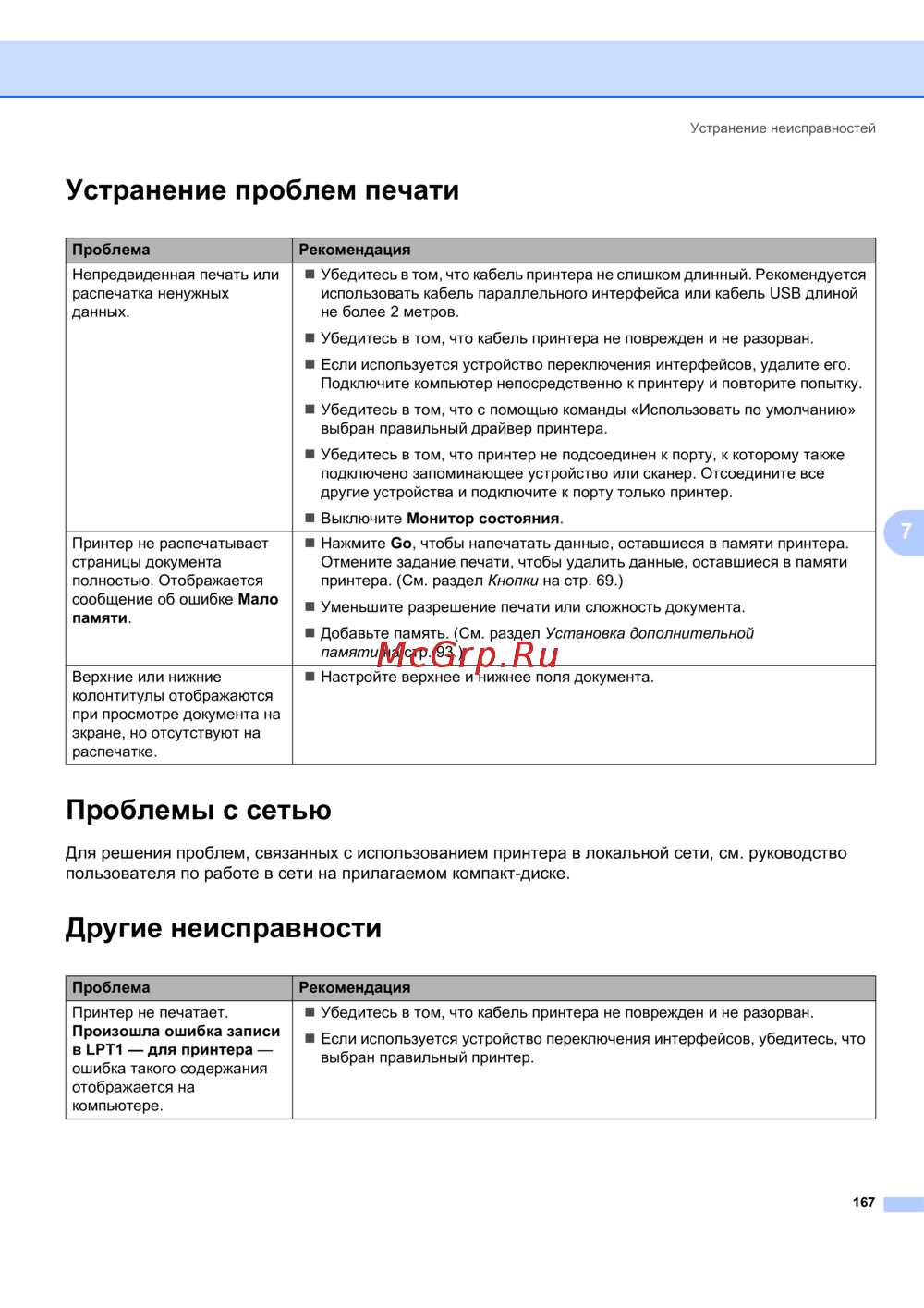 - Для решения проблем связанных с использованием принтера в локальной сети см руководство пользователя по работе в сети на прилагаемом компакт диске p.175