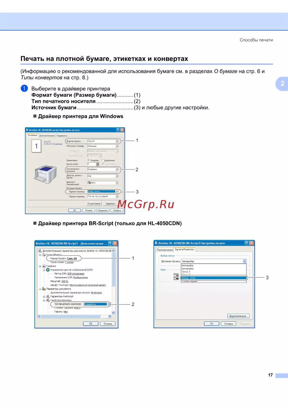 Brother HL-4040CN [25/202] Печать на плотной бумаге этикетках и конвертах