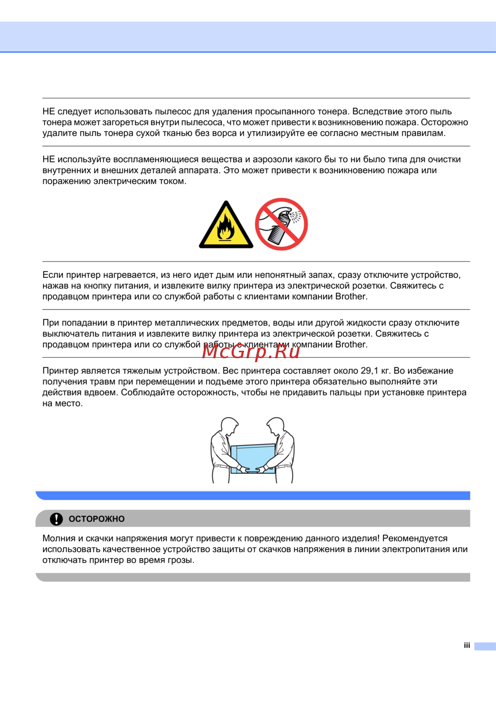 Brother HL-4040CN — правила безопасного использования принтера и предотвращения пожара [4/202]