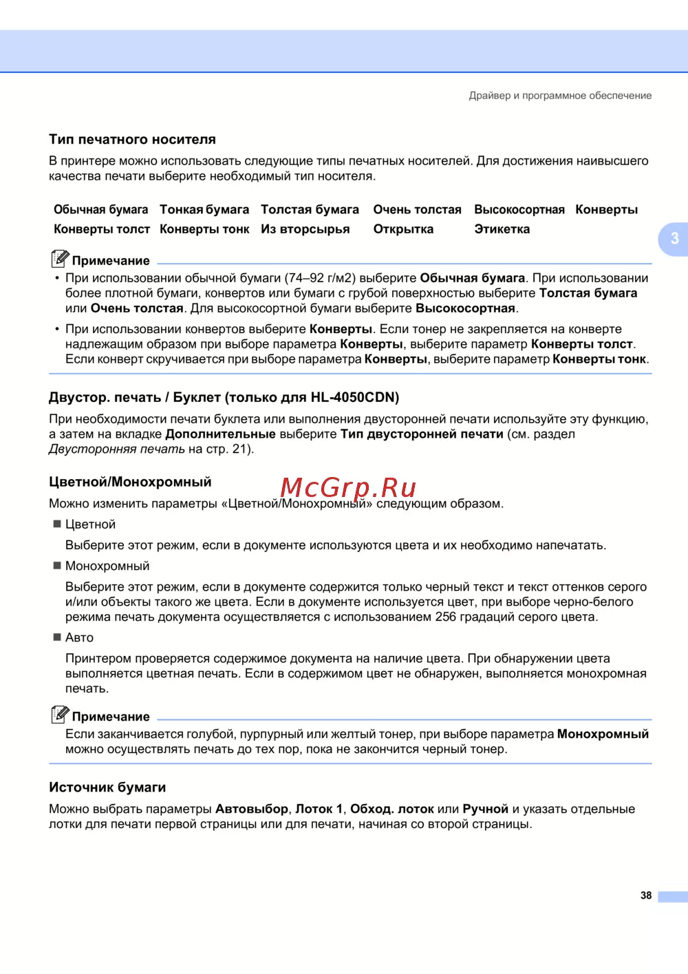 Двустор. печать / Буклет (только для HL-4050CDN) 3