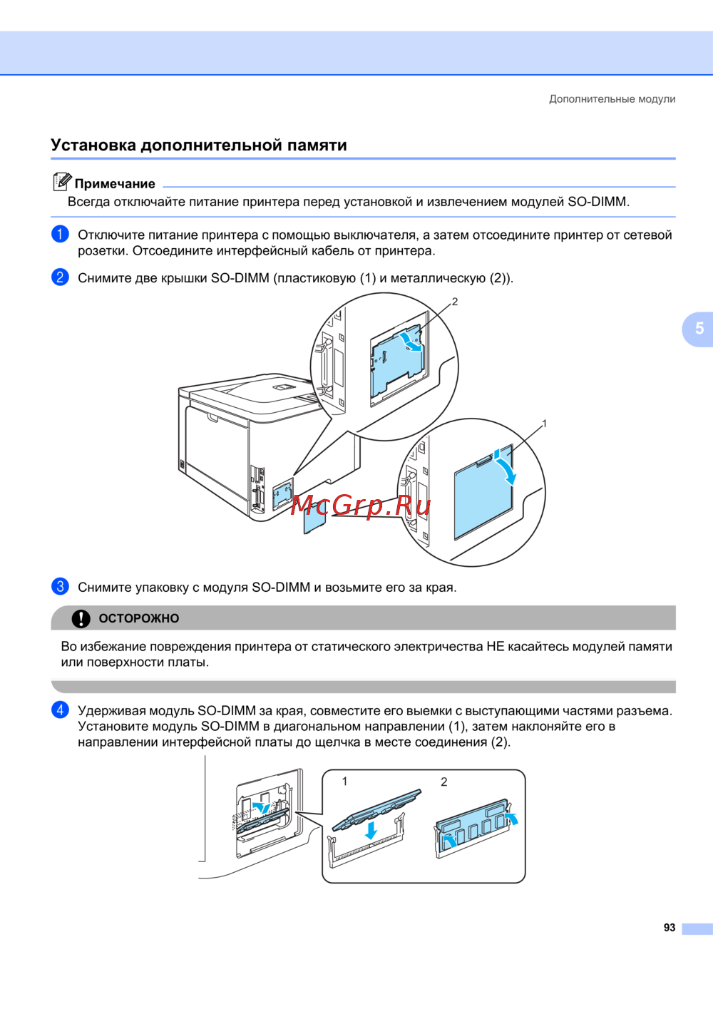 Brother HL-4050CDN — установка дополнительной памяти в принтер: пошаговое руководство [101/202]