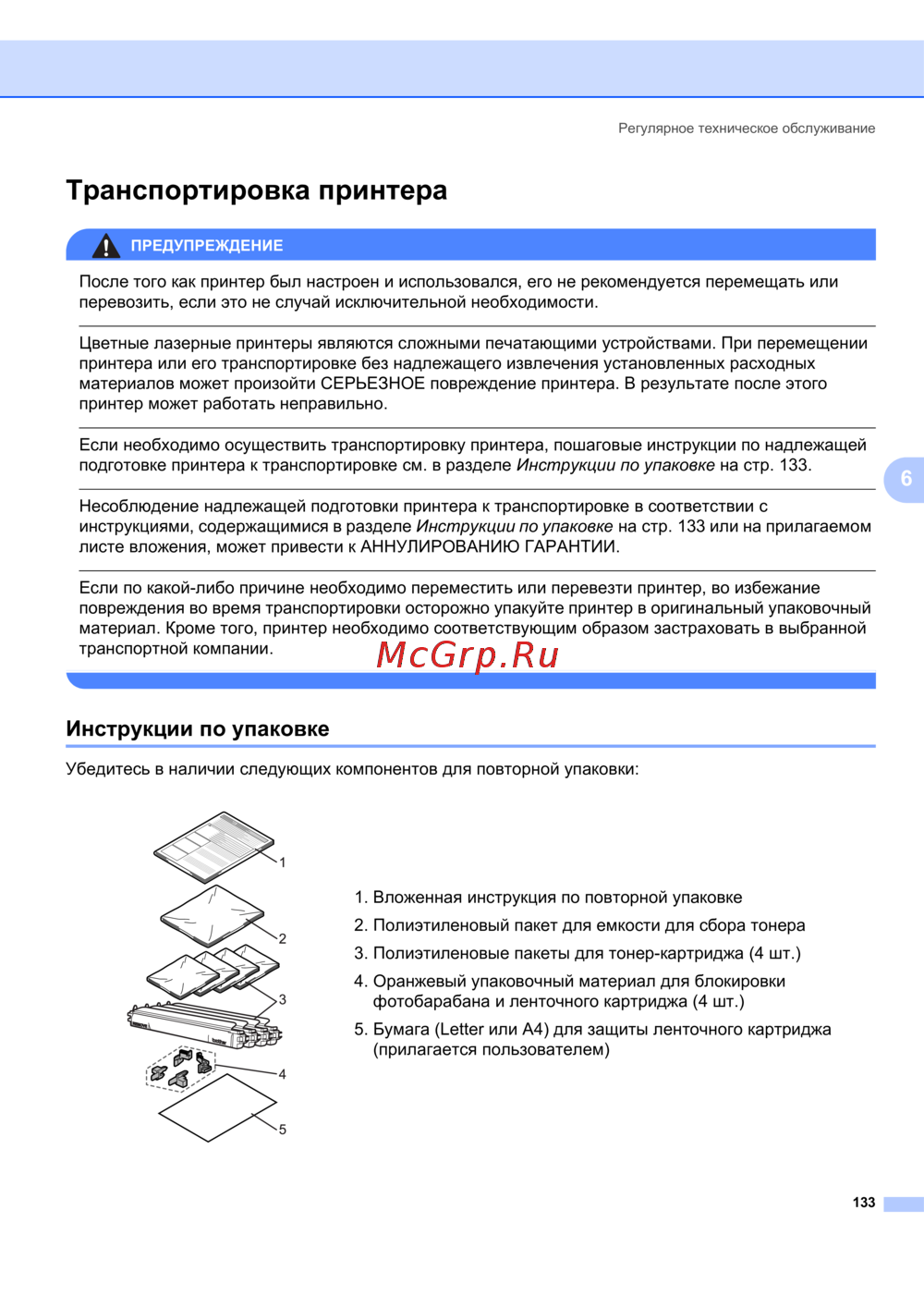 повреждения во время транспортировки осторожно упакуйте принтер в оригинальный упаковочный