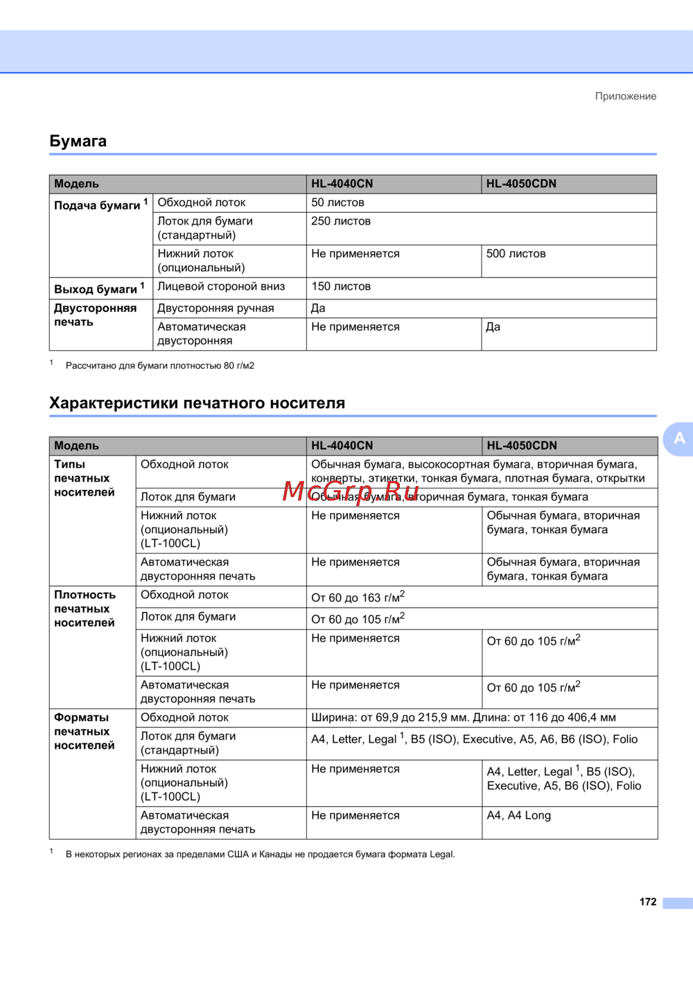 Brother HL-4050CDN [180/202] Характеристики печатного носителя