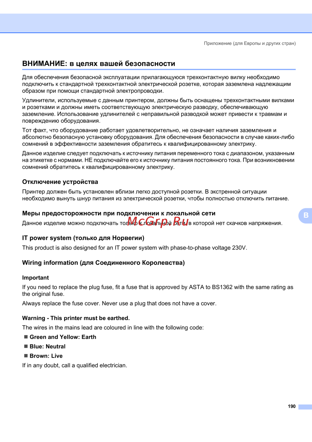 Brother HL-4050CDN — безопасное подключение электрического оборудования и принтеров [198/202]